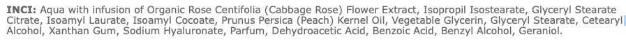 - Az organikus rózsa kivonat több mint 300 hatóanyagot tartalmaz, melynek köszönhetően támogatja a bőr természetes sejtanyagcseréjét és segíti a száraz és öregedő bőr revitalizálását. Visszafordítja az öregedés jeleit, csökkenti a ráncokat, feszesíti, kisimítja és ragyogóvá teszi a bőrt.